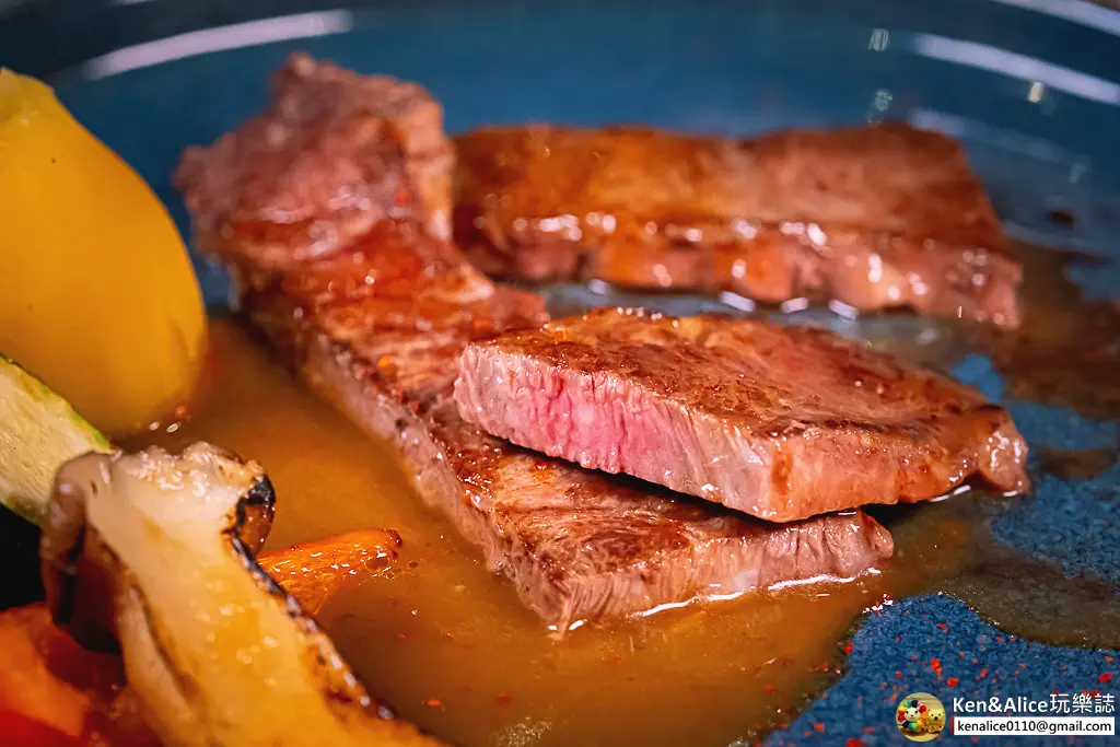 Alice喜歡7分熟的牛小排,上桌時肉香氣四溢,用刀子劃開時可以感受到牛肉的柔嫩,醬汁恰如其分扮演配角,與肉的鮮美形成互補,不需過多點綴便足以引出風味。